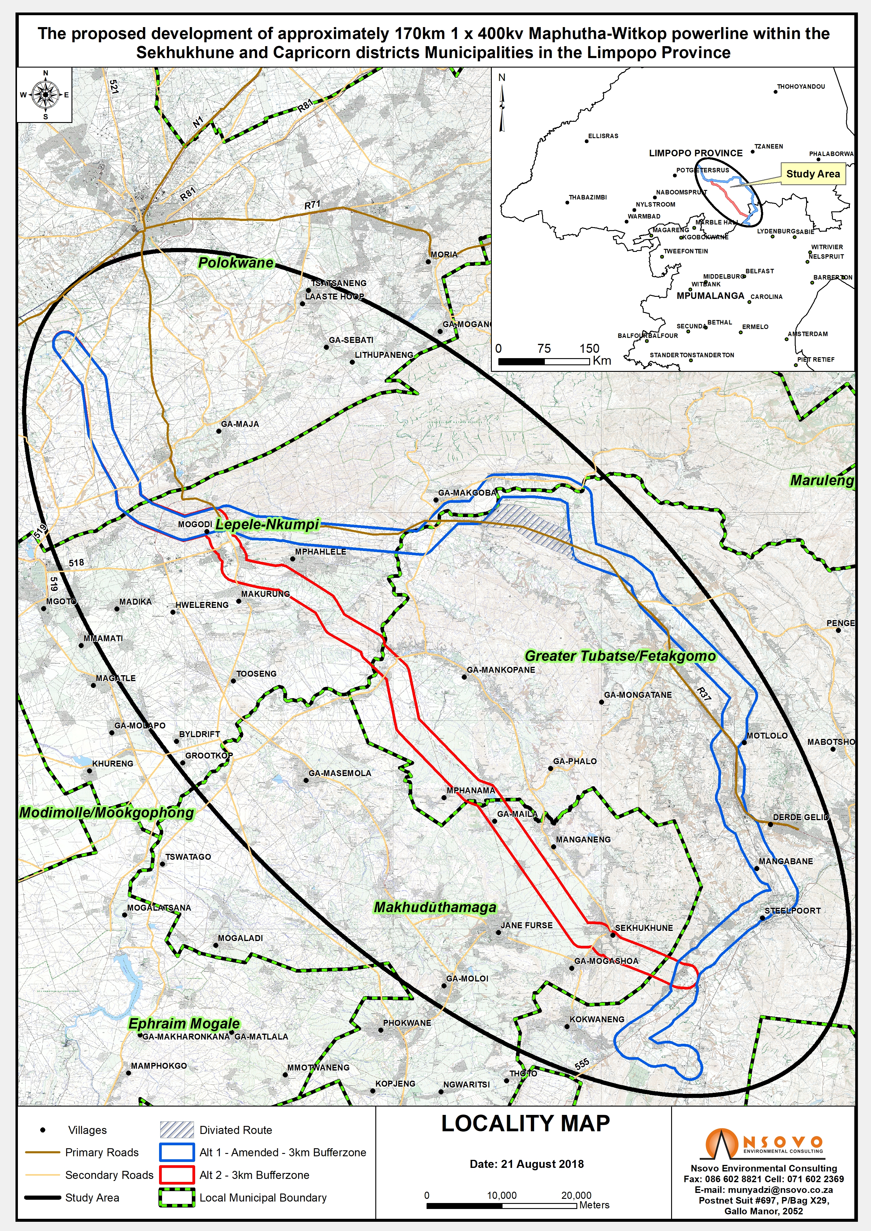 DRAFT EIR-ESKOM MAPHUTHA-WITKOP 179KM 400KV POWERLINE - Appendix C1_Ecological Assessment_D4 08082018 - Appendix C3-Agriculture Impact - Appendix C4-SIA Maphutha to Witkop Substation Corridor Adjustment_Alt 1 and 2 11 July 2018 |